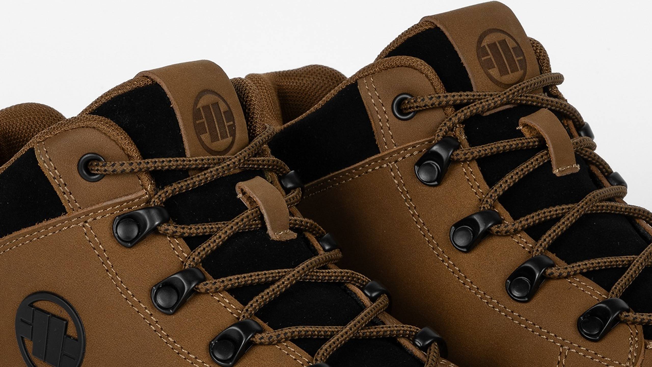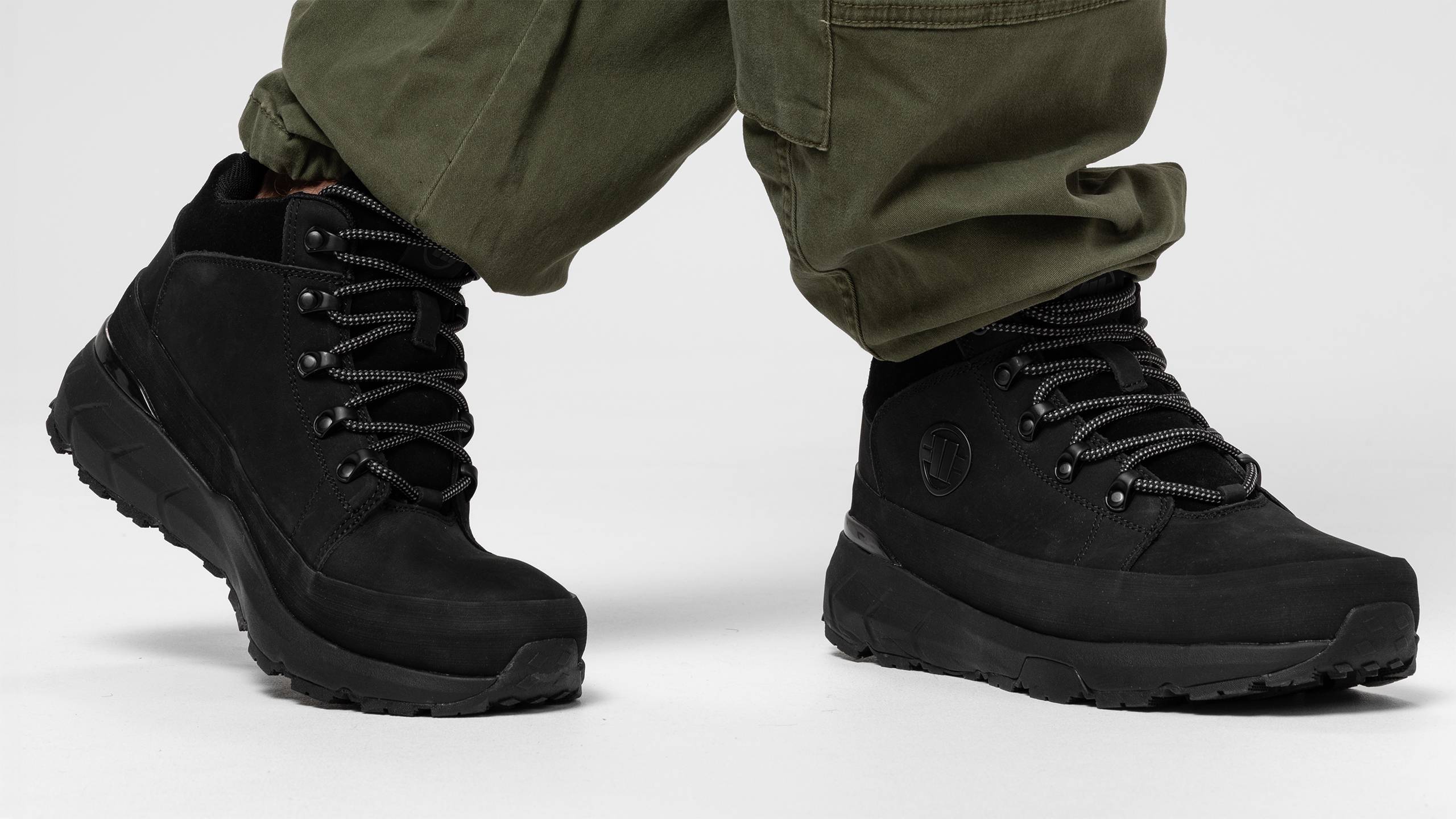 Stylische schwarze Outdoorschuhe sind die perfekte Wahl für alle, die an kalten Tagen Komfort und urbanen Charakter schätzen. Der hohe Schaft besteht aus einer Kombination von Velours- und Nubukleder, was Langlebigkeit und gute Wärmeisolierung gewährleistet. Das kleine PITBULL-Logo an der Seite und die massive Sohle verleihen Charakter, während das für die Sohle verwendete Material Stabilität und Alltagstauglichkeit garantiert.
