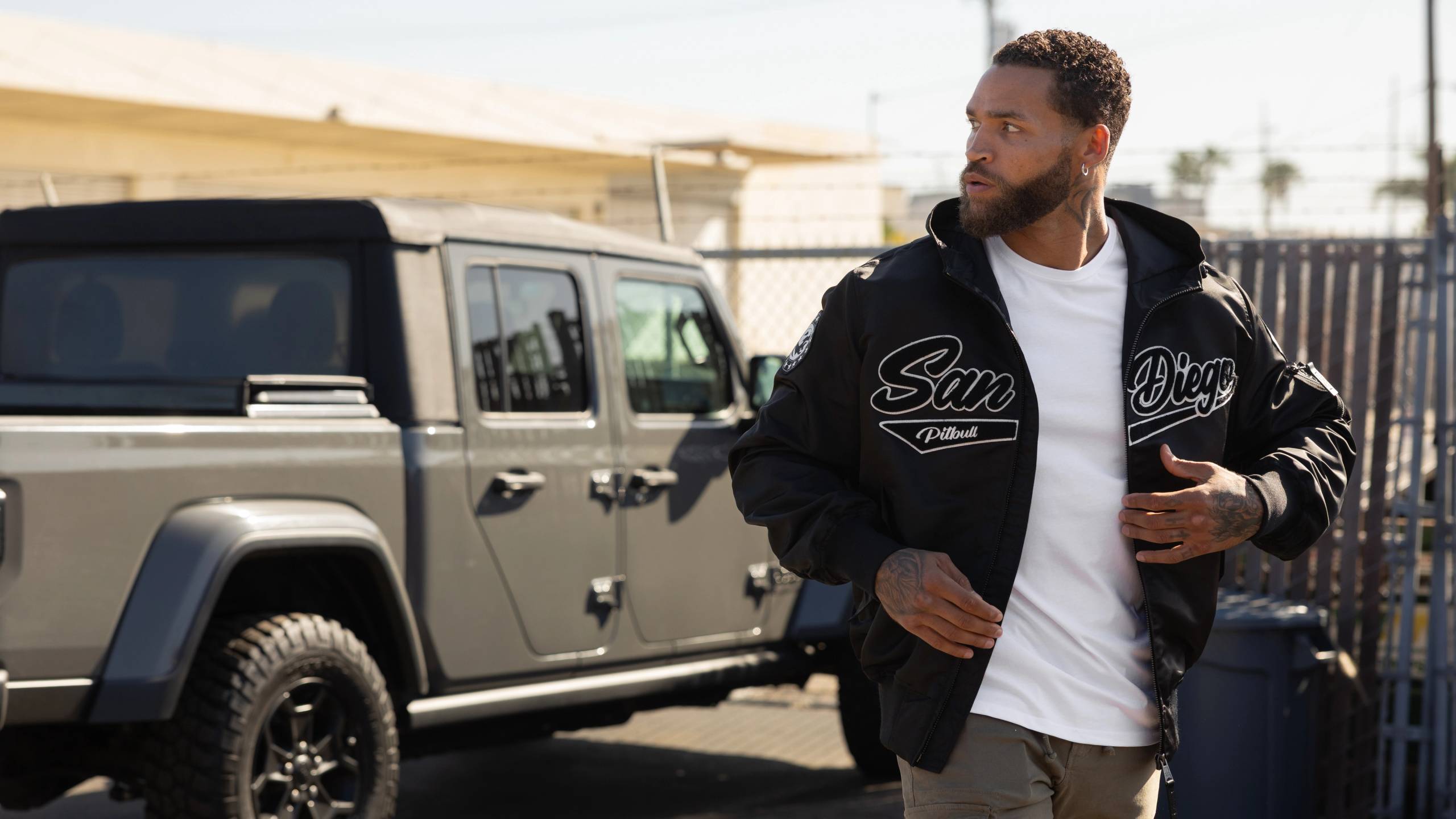 - großer Schriftzug „SAN DIEGO PITBULL“ auf der Brust